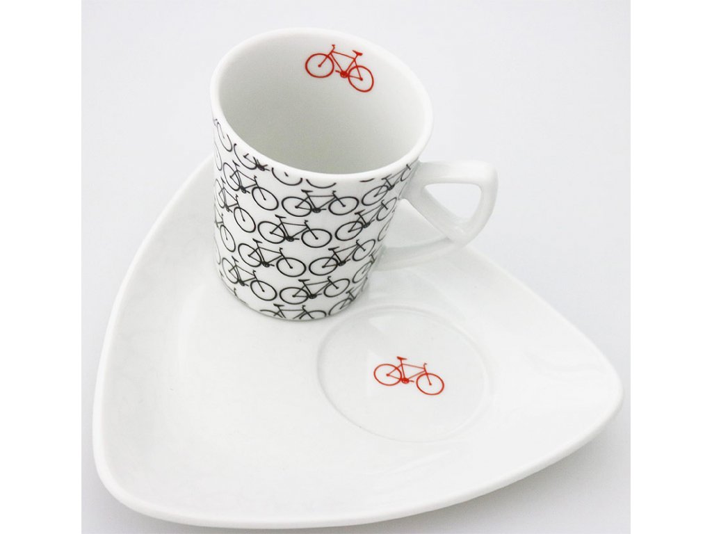 Autorský šálek a podšálek z tvrdého porcelánu koncipován tak, aby se na podšálek vešlo více než jen lžička, přitom však zůstal dobře skladovatelný a praktický. Objem je lehce přizpůsoben českým zákazníkům - 75ml. Délka hrany podšálku - 15cm, průměr - 14cm. Jedná se o jedinečný autorský tvar, který není dostupný jinde.