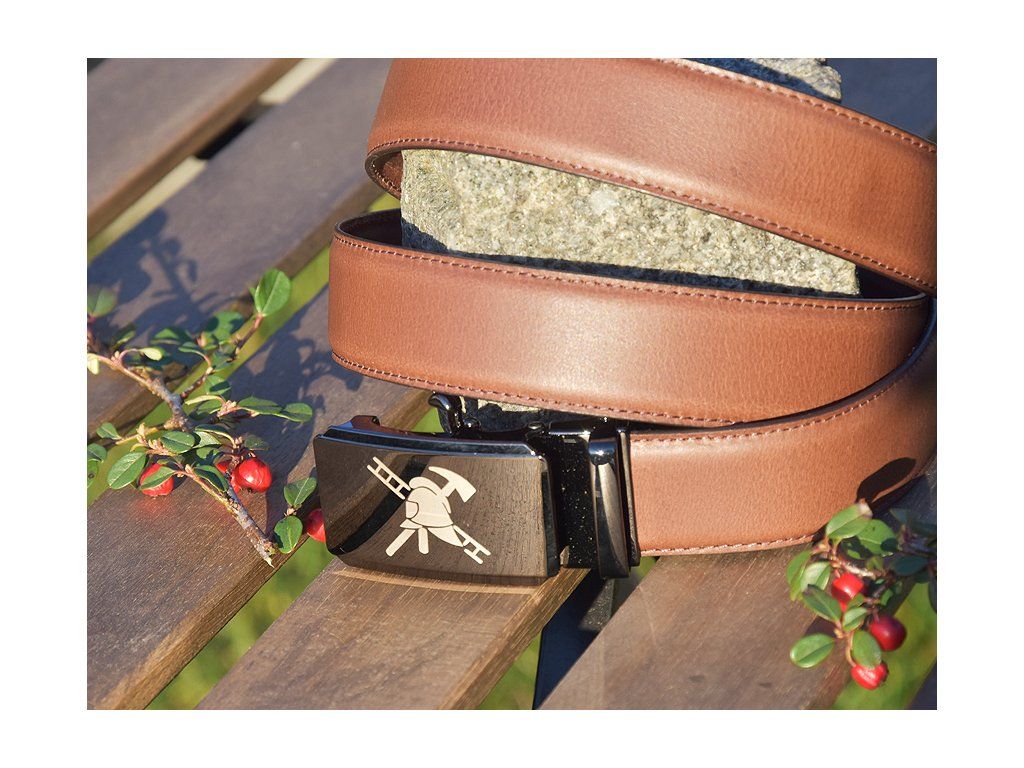 Kožený Společenský Pásek "Hasiči 02" - hnědý matný
