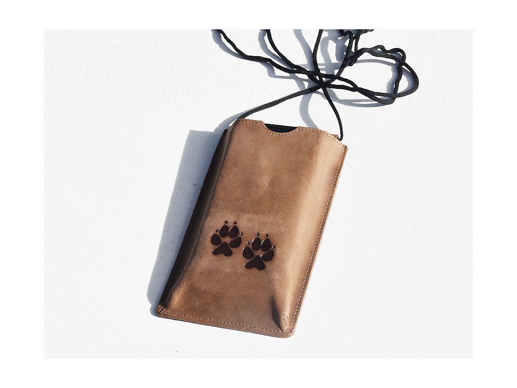 Kožená kapsa na mobil se šňůrkou přes rameno