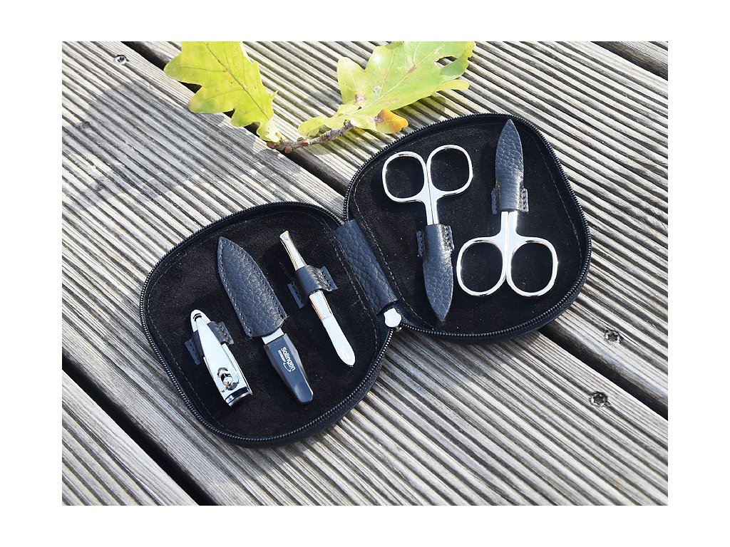 Díky kompaktním rozměrům a pevnému koženému pouzdru je sada ideální nejen pro domácí použití, ale i na cesty. Obsahuje základní nástroje pro rychlou a precizní úpravu nehtů – nůžky, pinzetu a pilník. Stylový a funkční doplněk pro každého, kdo dbá na detaily.