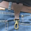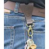 Kožená posuvka na pásek s karabinou.