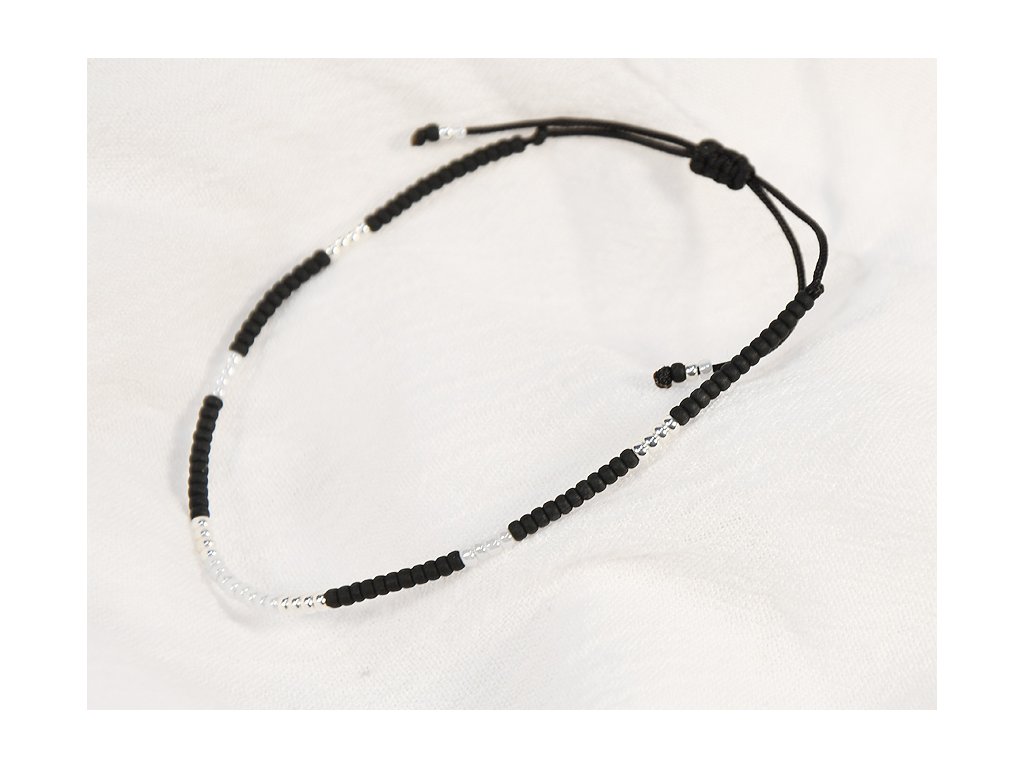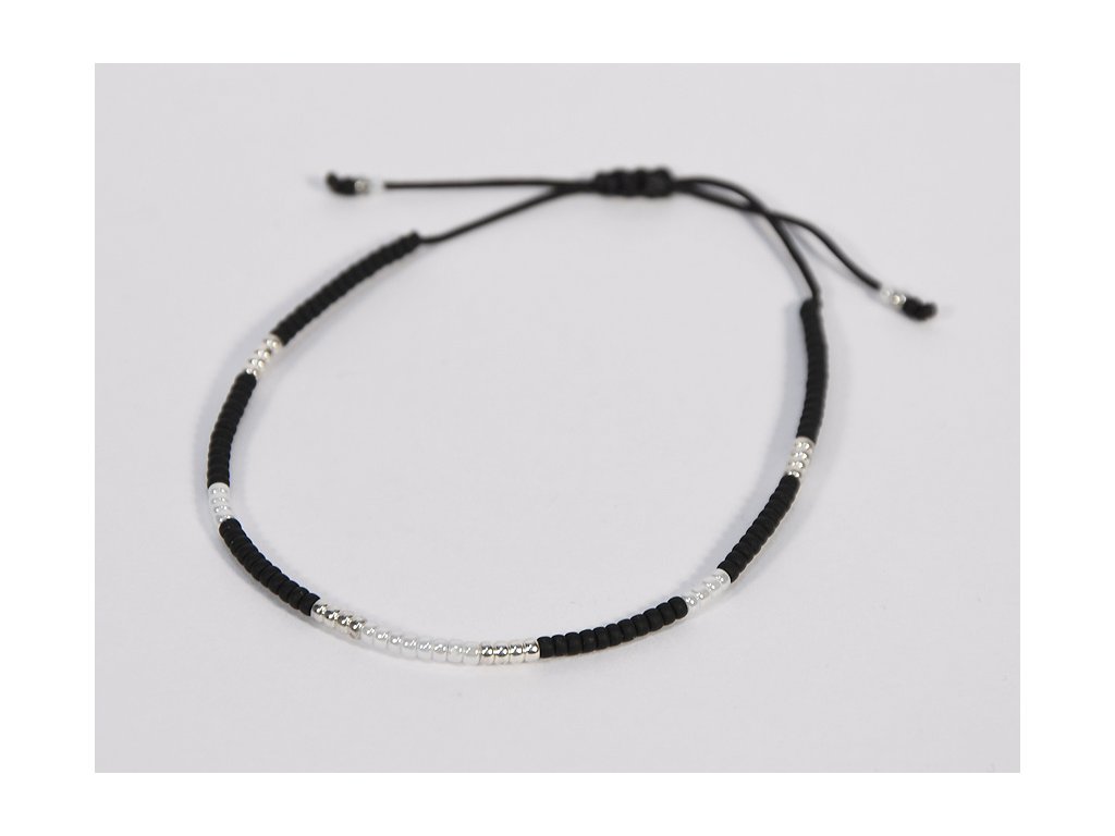 Náramek se skládá z precizních japonských skleněných korálků Miyuki. Jednoduché vázání z kvalitní nylonové cívky si zvládne zavázat každý sám. Náramek je vložen do sametového černého pytlíčku.