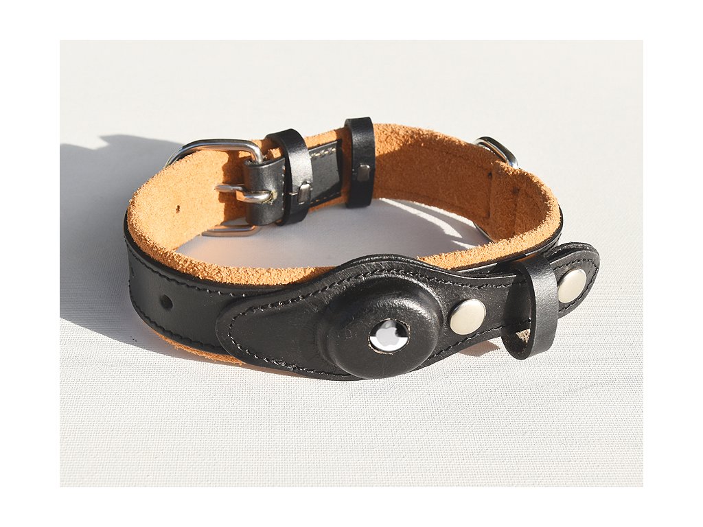 Obojek z vysoce kvalitní kůže s pohodlným polstrováním a s kapsou na Apple Air Tag
