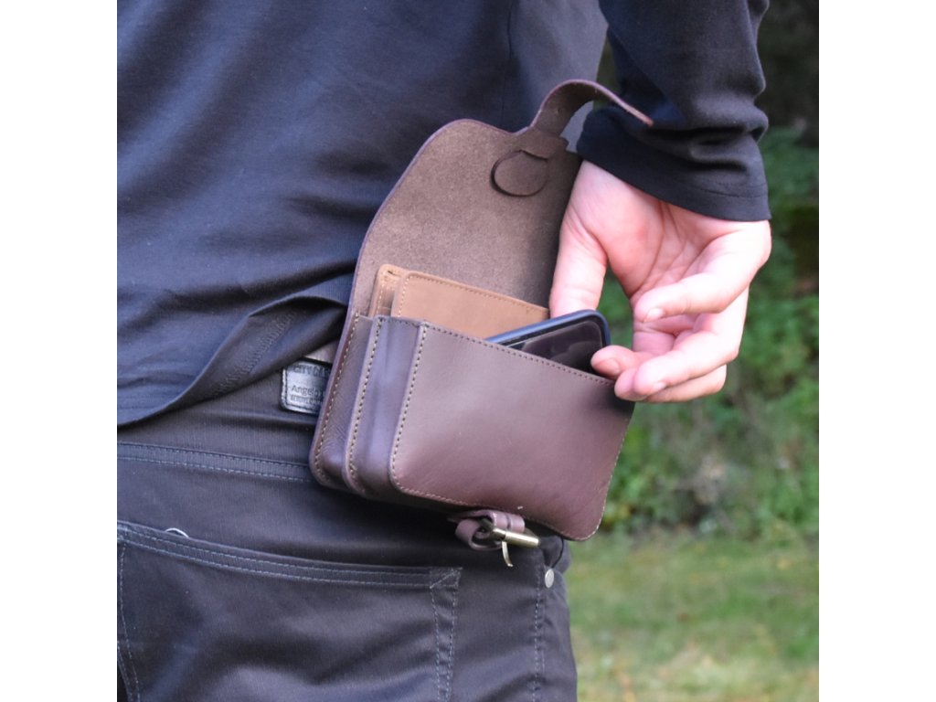 Mějte volné ruce a klíče, peněženku, mobil si dejte doslova na opasek. Kožená hnědá kapsa s hnědým prošívání je z pravé kůže! Zapínání je na přezku, zloděj nemá šanci. Vnitřní část vyplňují dvě kapsy s pevnější přepážkou. Kvalita zpracování je prvotřídní. Tuto kapsu si prostě zamilujete.