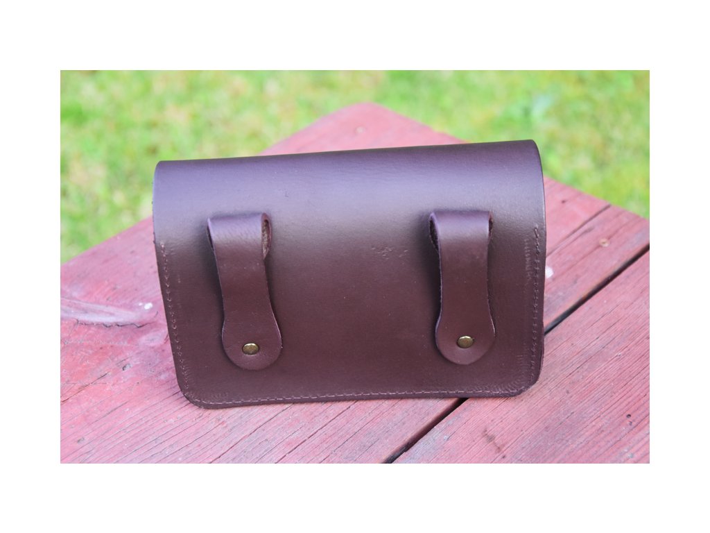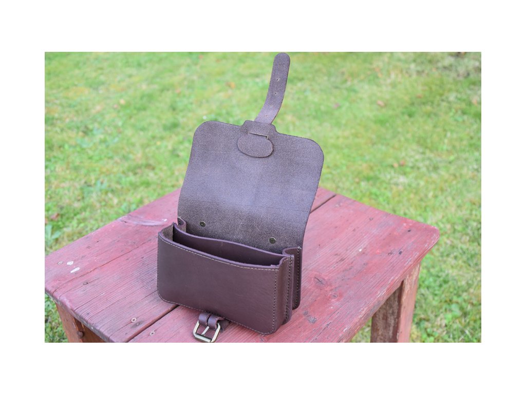 Kožená kapsa na pásek s přezkou a 2 vnitřnímu kapsami.