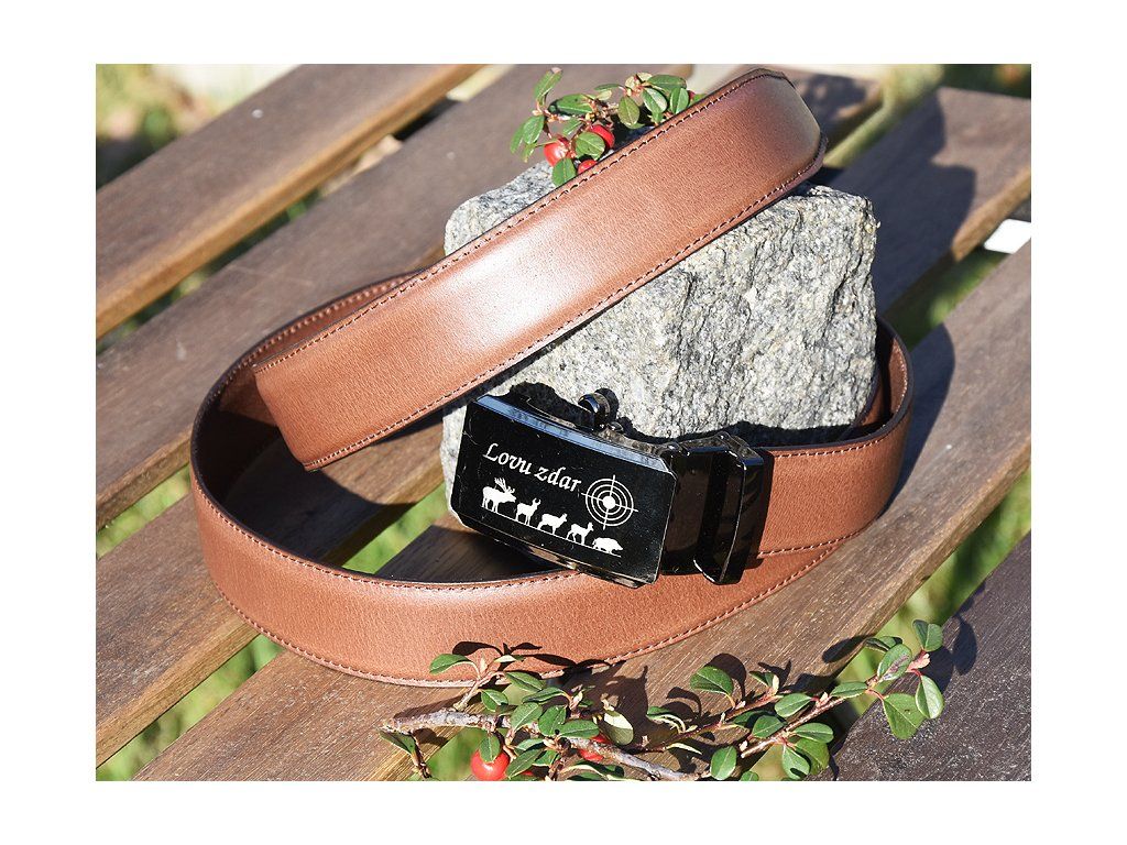 Kožený Společenský Pásek "Lovu Zdar" - hnědý matný