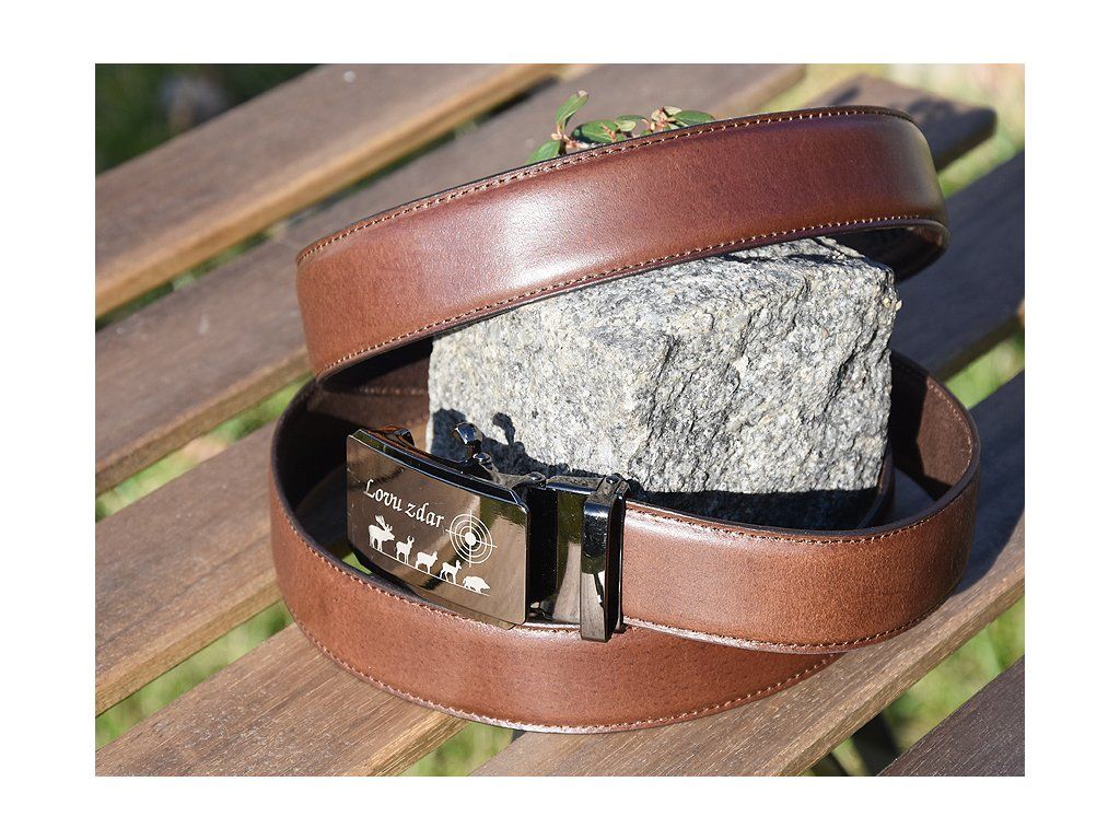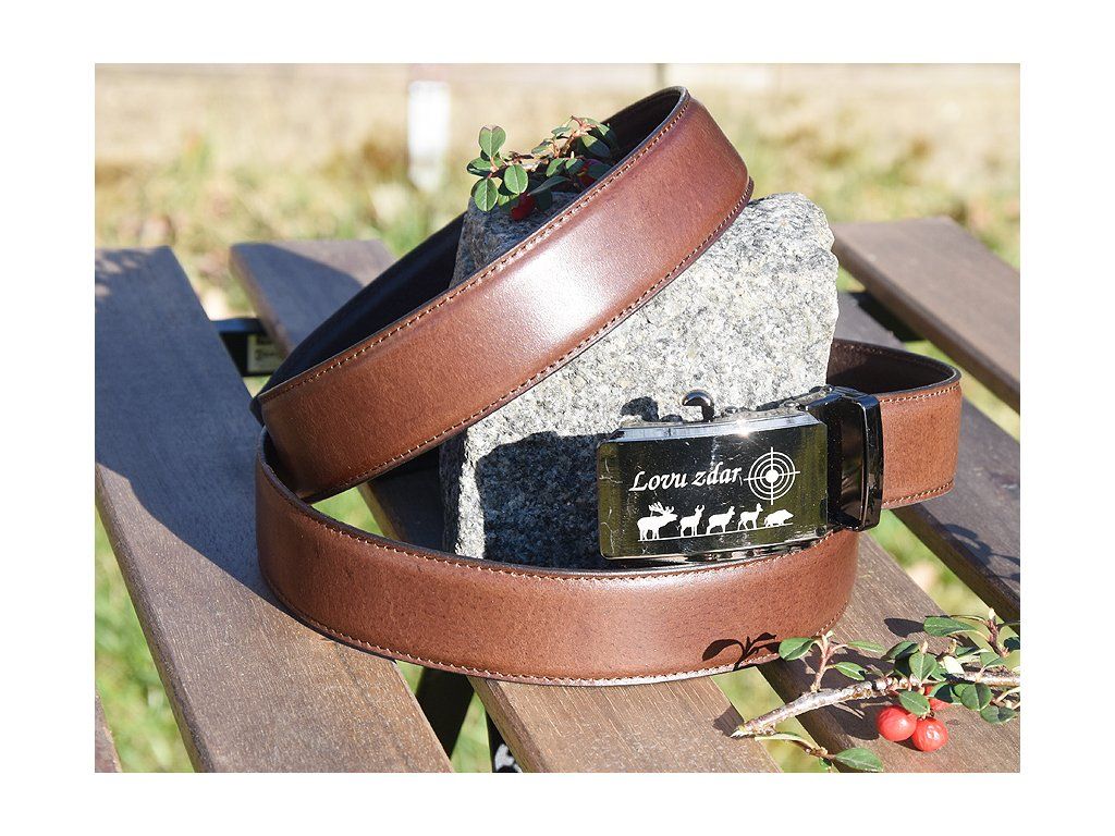 Kožený Společenský Pásek "Lovu Zdar" - Hnědý