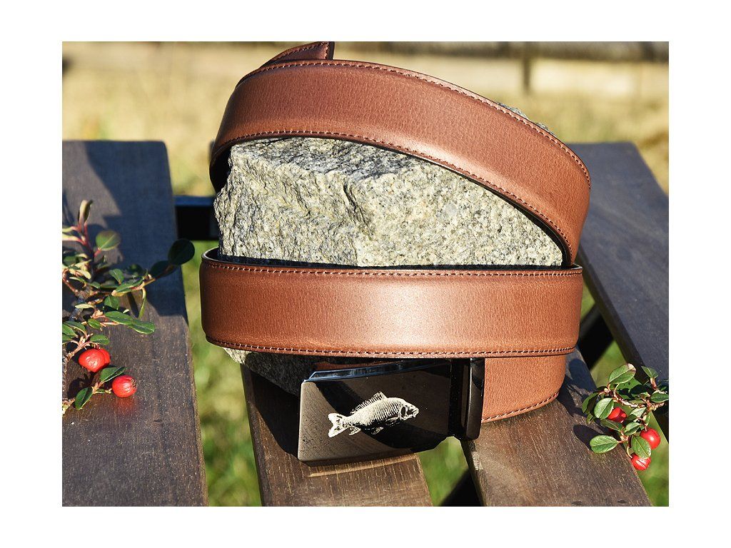 Kožený Společenský Pásek "Kapr" - hnědý matný