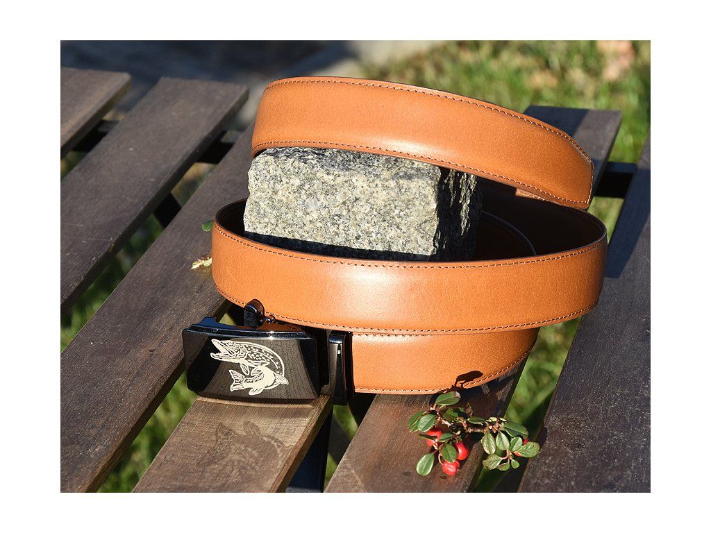 Kožený Společenský Pásek "Štika" - světle hnědý