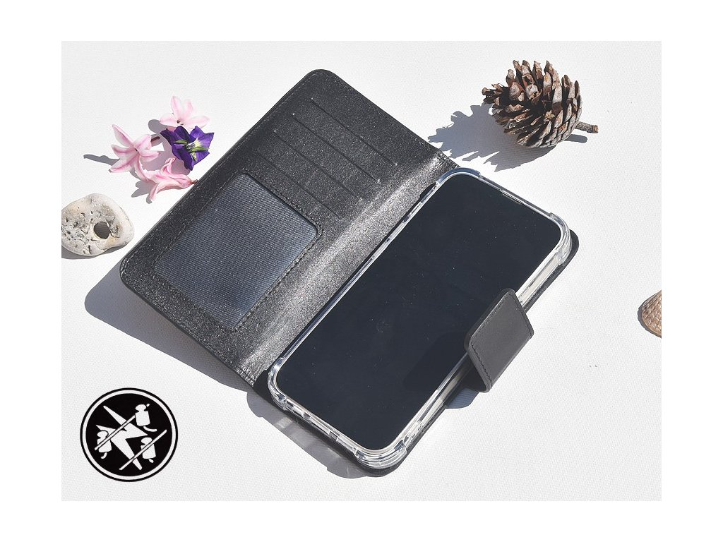 Praktický knižkový (flipový) obal na telefón z pravej kože zabezpečí ochranu pred poškriabaním a poškodením.