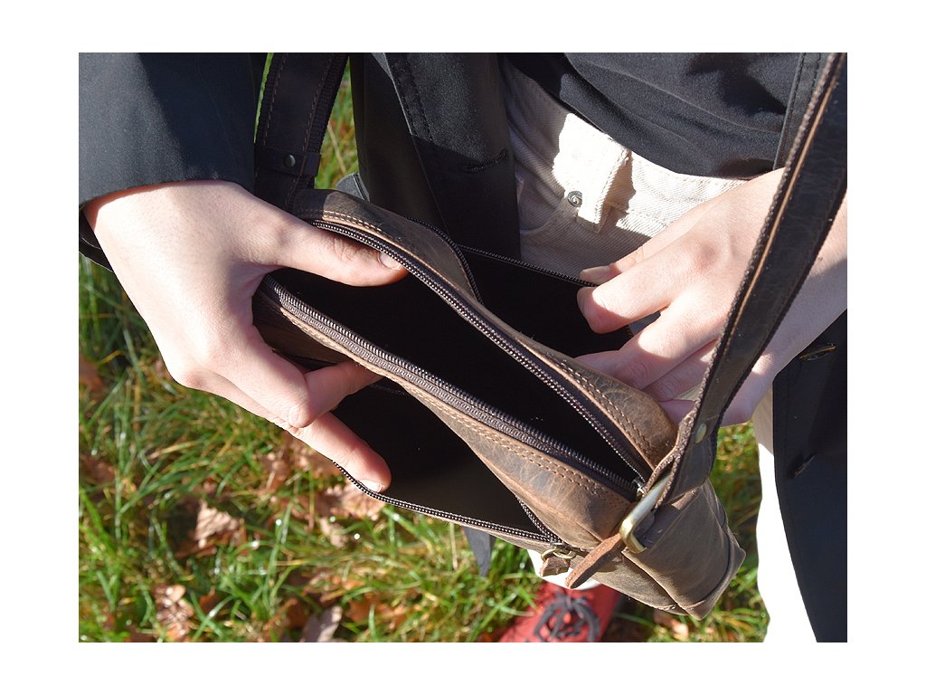 Taška (unisex) 22 x 26 cm (barva tmavě hnědá) z výběrové kůže.