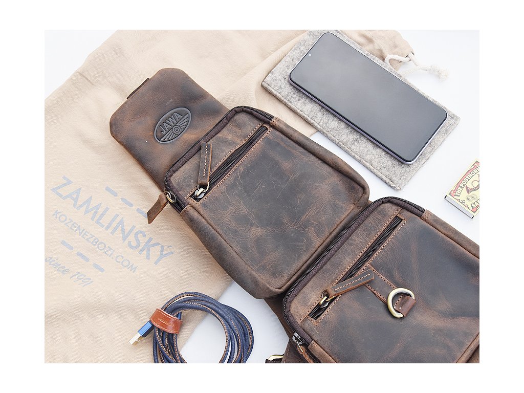 Pánské tašky Zamlinsky zaujmou především svým originálním vzhledem. Elegantní a netradiční design ve stylu vintage vytváří z obyčejné pánské tašky nejen praktický, ale také vkusný módní doplněk. Své produkty vyrábíme z kvalitní robustní hovězí kůže, spolehněte se na jejich vysokou odolnost a dlouholetou životnost. Pánské tašky přes rameno se hodí na běžné denní nošení, do práce i na výlet.