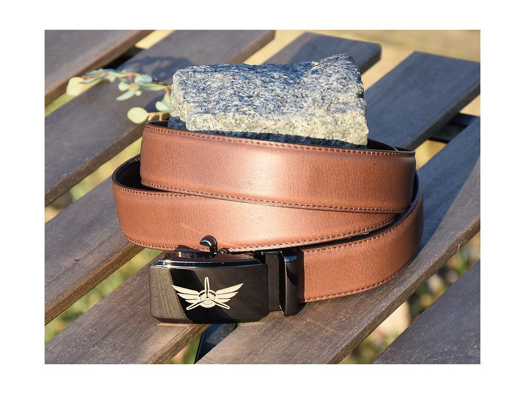 Kožený Společenský Pásek "Airplane 03" - hnědý matný