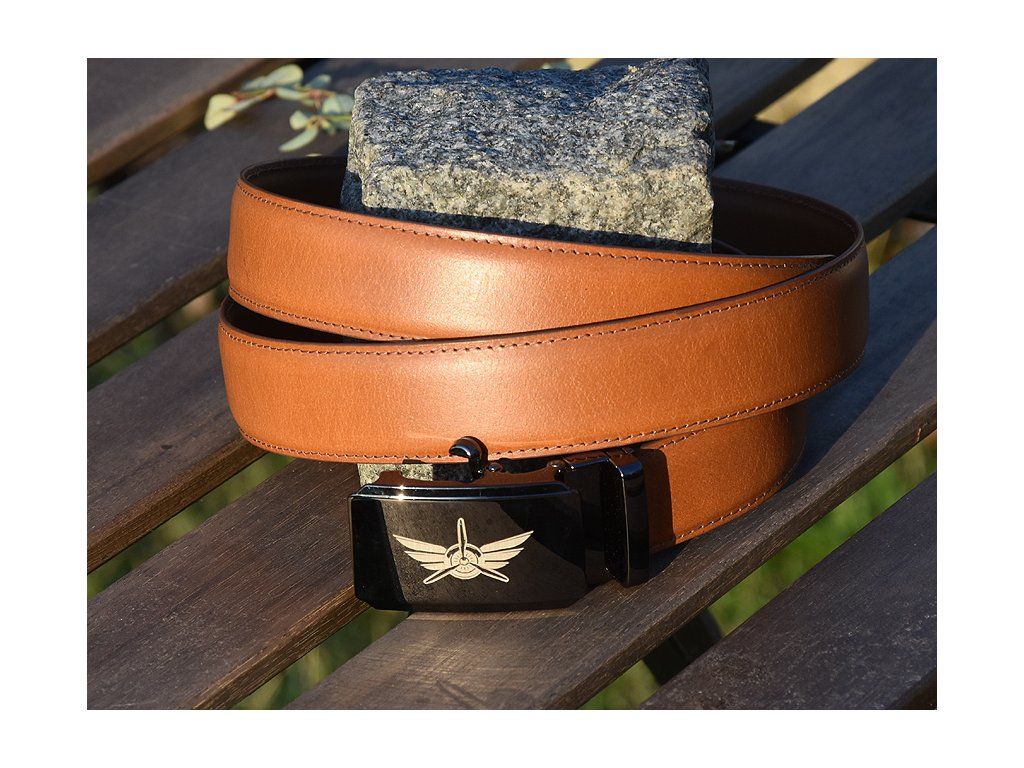 Kožený Společenský Pásek "Airplane 03" - světle hnědý