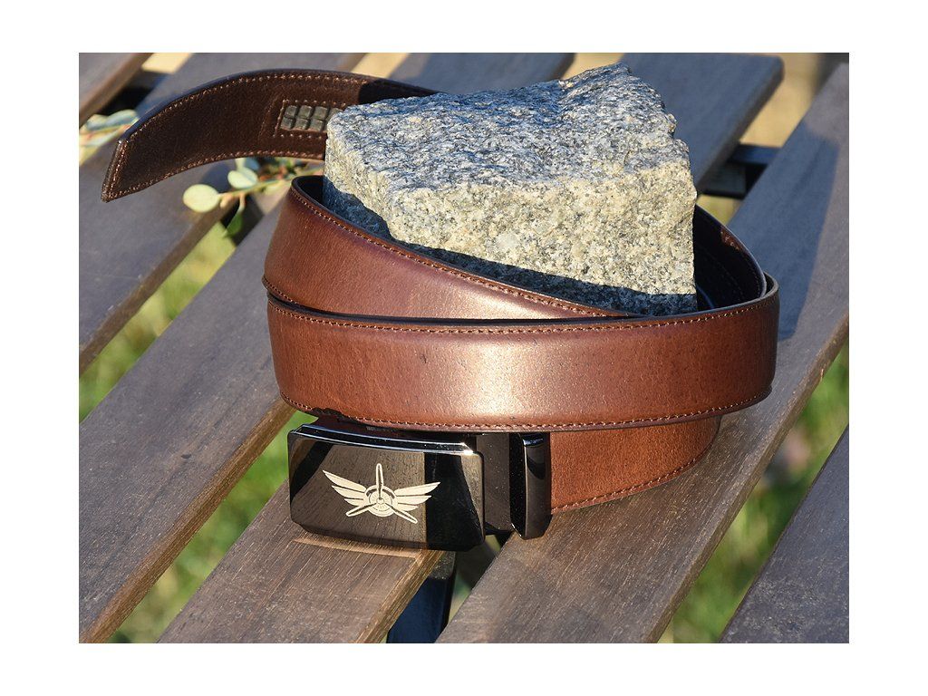 Kožený Společenský Pásek "Airplane 03" - tmavě hnědý